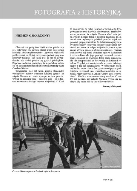 W styczniu 1971r. w Radomsku pewien miejscowy dziennikarz (a zarazem nauczyciel w jednej ze szkół) obwieścił w lokalnej gazecie, że Niemen .. "wypiął się na publiczność". Wkrótce potem w "Expressie Wieczornym" ukazał się artykuł, gdzie -niejaki U-ZZ potwierdził relację "Gazety Radomszczańskiej" pisząc , że Niemen ściągnął spodnie po występie w Radomsku. Tego było już za wiele, zważywszy nawet na prezentowany przez-a stoicki spokój wobec wcześniejszych (równie bezpodstawnych) ataków ! Z pomocą znanego adwokata (obrońcy z procesów politycznych ) postanowił wytoczyć sprawę o zniesławienie.